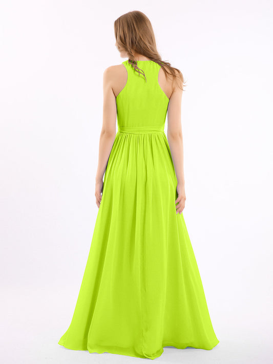 Babaroni AmeliaEl vestido de chiffon con escote en V profundo y lazo de sash Verde Lima