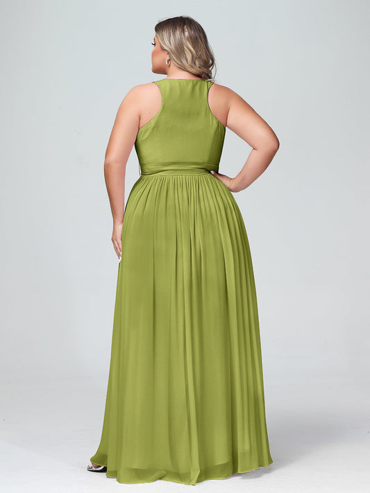 Babaroni AmeliaEl vestido de chiffon con escote en V profundo y lazo de sash Verde Lima Tallas Grandes