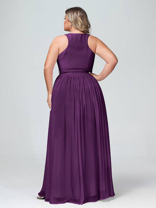 Babaroni AmeliaEl vestido de chiffon con escote en V profundo y lazo de sash Uva Tallas Grandes