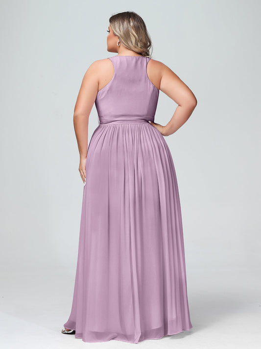 Babaroni AmeliaEl vestido de chiffon con escote en V profundo y lazo de sash Wisteria Tallas Grandes