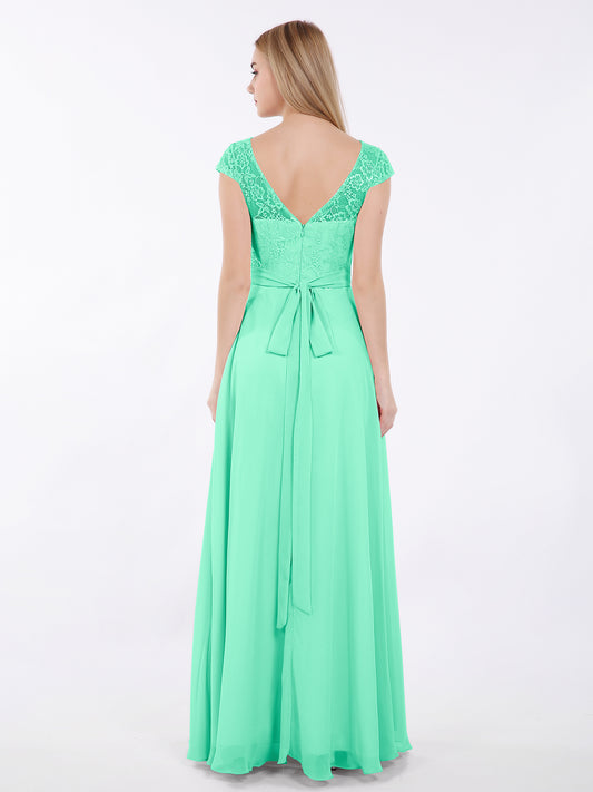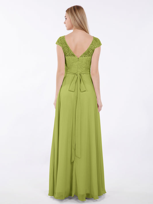 Babaroni ElsaElsa Mangas De La Tapa Gasa Vestido Con Faja Verde Lima Tallas Grandes