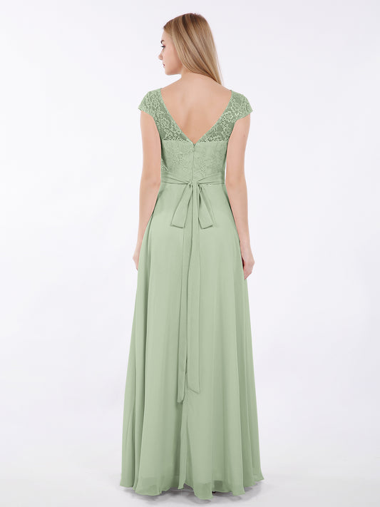 Babaroni ElsaElsa Mangas De La Tapa Gasa Vestido Con Faja Salvia Tallas Grandes