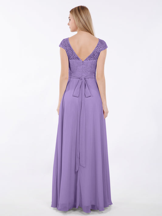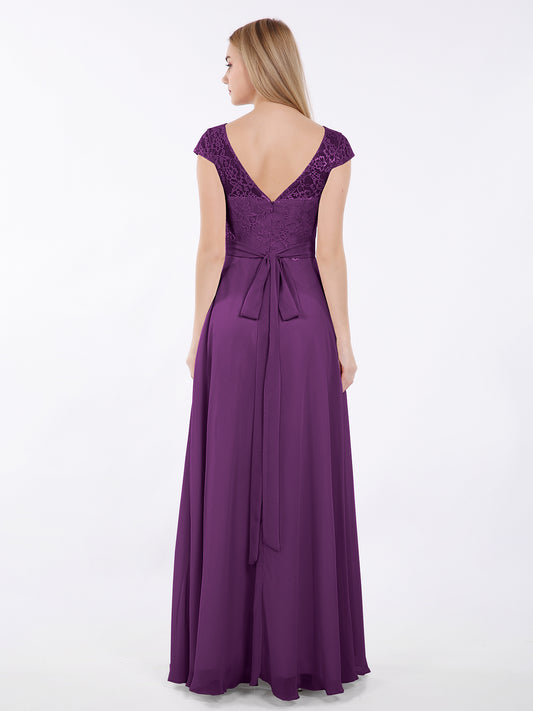 Babaroni ElsaElsa Mangas De La Tapa Gasa Vestido Con Faja Uva Tallas Grandes
