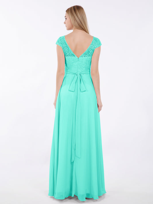 Babaroni ElsaElsa Mangas De La Tapa Gasa Vestido Con Faja Turquesa Tallas Grandes