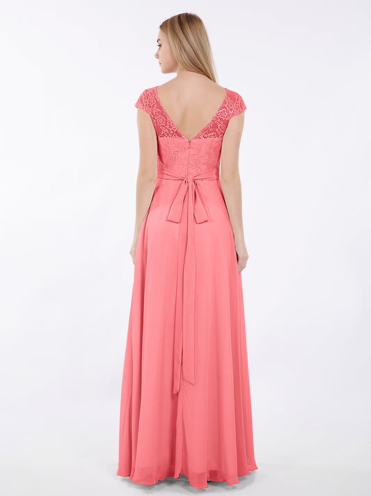 Babaroni ElsaElsa Mangas De La Tapa Gasa Vestido Con Faja Sandía Tallas Grandes