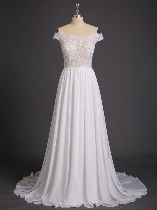 Babaroni ElsieElsie Ver A Traves De Corpino Fuera Del Hombro Corte De Novia Marfil