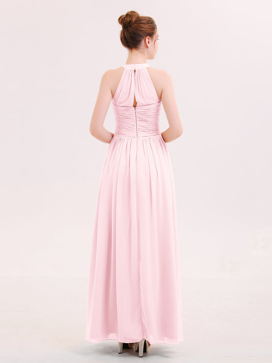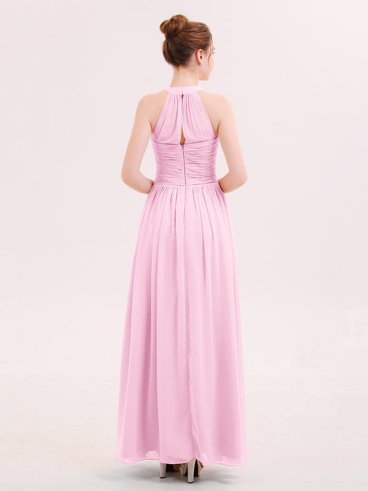 Babaroni ElviraElvira Cabestro Gasa Largo Corte De Dama De Honor Con Cinturon Rosa Claro
