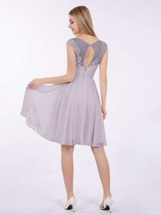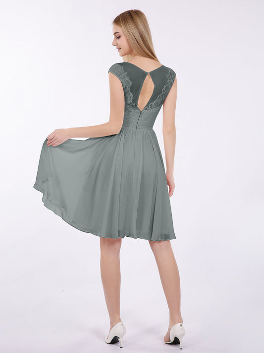 Babaroni EricaErica Gasa Y Encaje Corto Corte De Dama De Honor Gris Acero