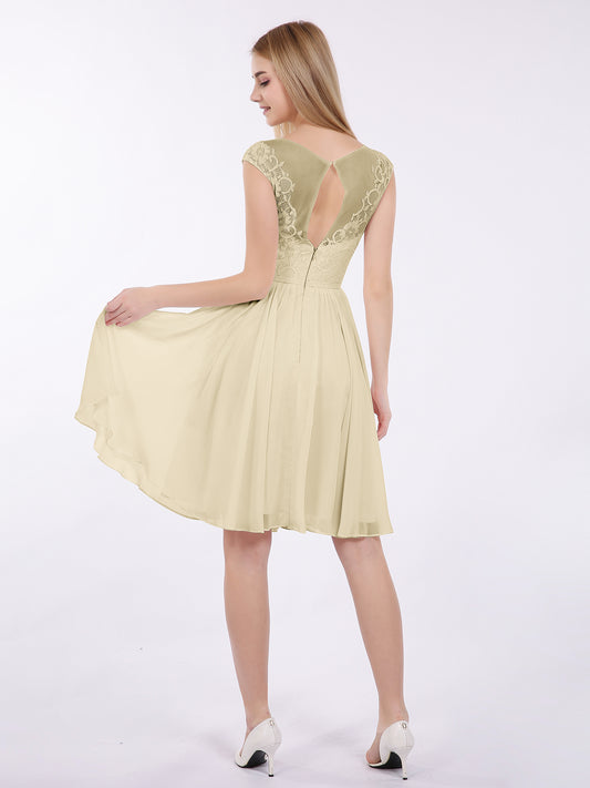 Babaroni EricaErica Gasa Y Encaje Corto Corte De Dama De Honor Champán