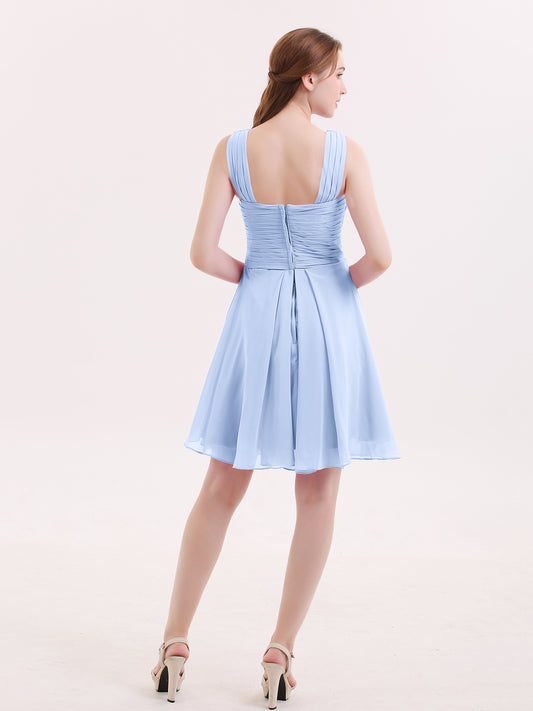 Babaroni EthelEthel Cruzado Delante Imperial Cintura Corto Vestido De Dama De Honor Azul Cielo