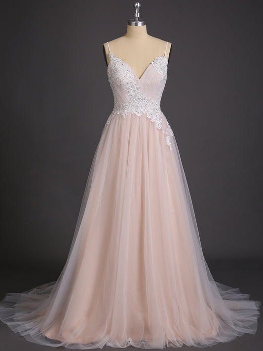 Babaroni EstherEsther Tirante Espagueti Escote En V Vestido De Novia Con Tren Champán