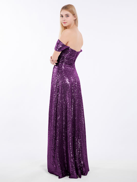 Babaroni AlvaAlva Largo Lentejuelas Vestido Con Fuera Del Hombro Uva Tallas Grandes