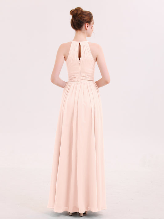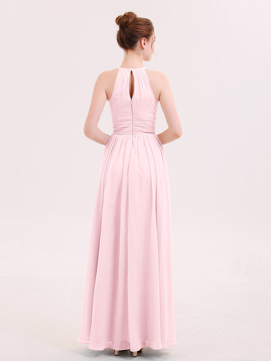 Babaroni FannyFanny Cabestro Largo Gasa Vestido De Dama De Honor Rosa Claro