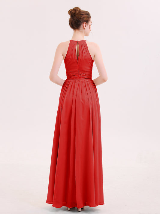 Fanny Cabestro Largo Gasa Vestido De Dama De Honor Rojo Tallas Grandes