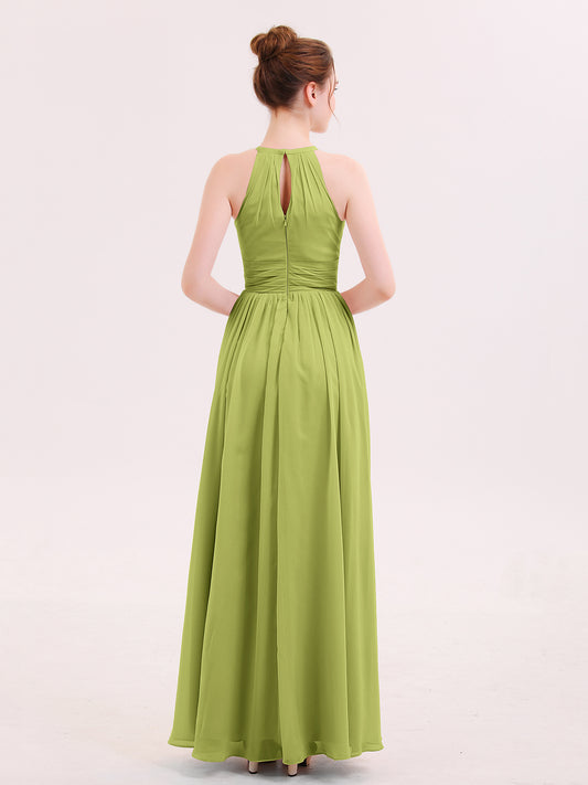 Babaroni FannyFanny Cabestro Largo Gasa Vestido De Dama De Honor Verde Lima