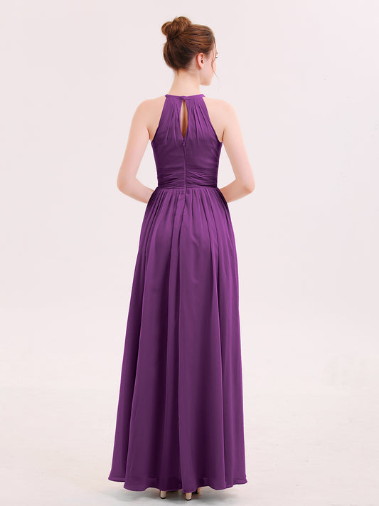 Fanny Cabestro Largo Gasa Vestido De Dama De Honor Uva Tallas Grandes