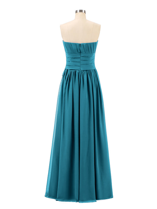 Babaroni FredericaFrederica Sin Tirante Gasa Largo Vestido De Dama De Honor Azul Océano Tallas Grandes