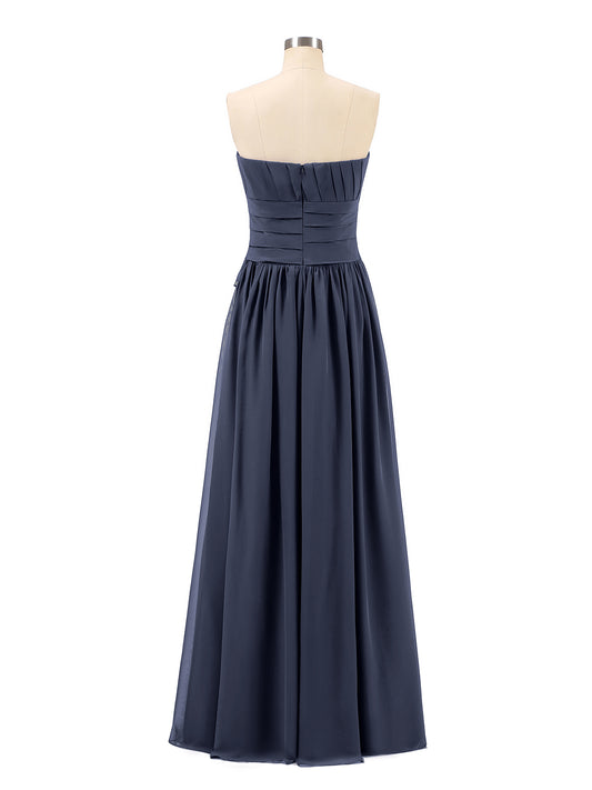Babaroni FredericaFrederica Sin Tirante Gasa Largo Vestido De Dama De Honor Azul Pizarra