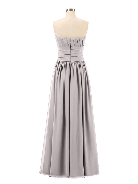 Babaroni FredericaFrederica Sin Tirante Gasa Largo Vestido De Dama De Honor Plata