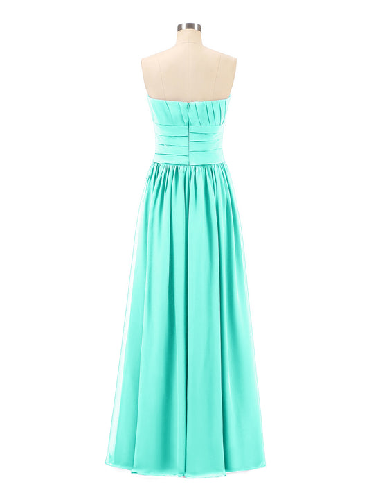 Babaroni FredericaFrederica Sin Tirante Gasa Largo Vestido De Dama De Honor Turquesa