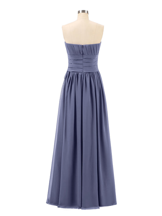 Babaroni FredericaFrederica Sin Tirante Gasa Largo Vestido De Dama De Honor Tormenta