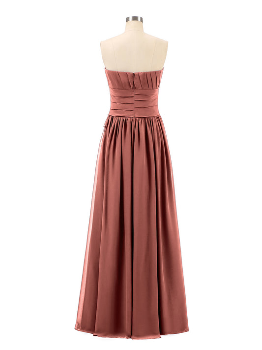 Babaroni FredericaFrederica Sin Tirante Gasa Largo Vestido De Dama De Honor Terracota