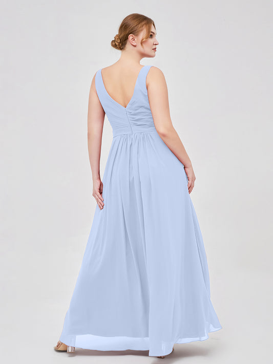 Babaroni GeorgiaGeorgia Escote En V Gasa Largo Vestido De Dama De Honor Azul Cielo