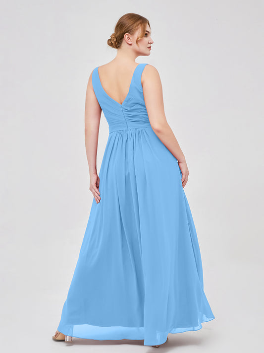Babaroni GeorgiaGeorgia Escote En V Gasa Largo Vestido De Dama De Honor Azul Tallas Grandes