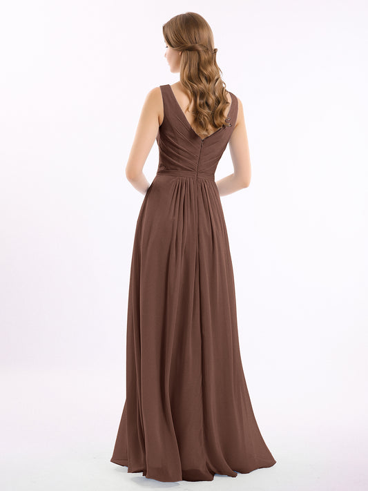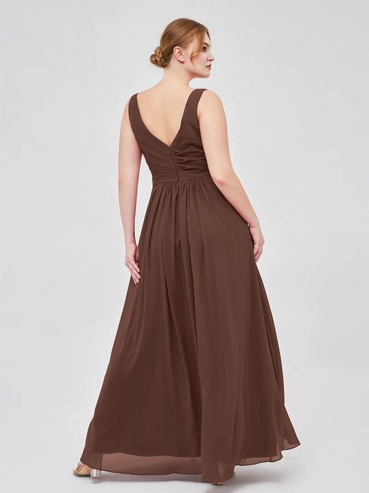 Babaroni GeorgiaGeorgia Escote En V Gasa Largo Vestido De Dama De Honor Chocolate Tallas Grandes