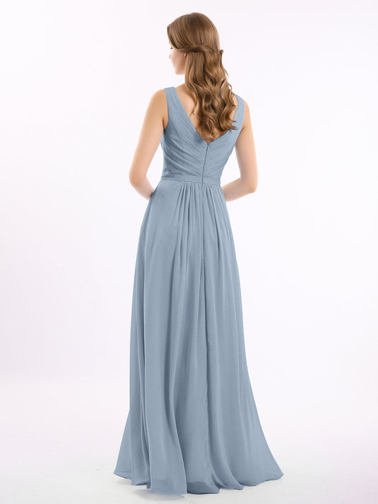 Babaroni GeorgiaGeorgia Escote En V Gasa Largo Vestido De Dama De Honor Azul Polvoriento Tallas Grandes