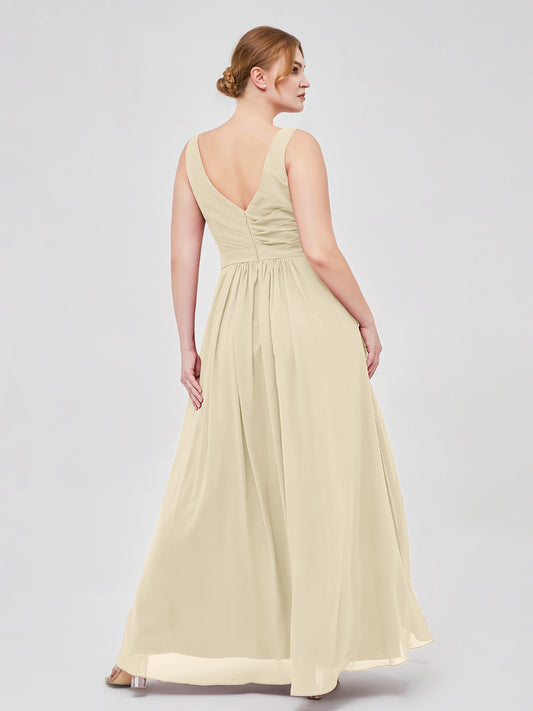 Babaroni GeorgiaGeorgia Escote En V Gasa Largo Vestido De Dama De Honor Champán