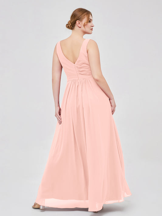 Babaroni GeorgiaGeorgia Escote En V Gasa Largo Vestido De Dama De Honor Coral Tallas Grandes