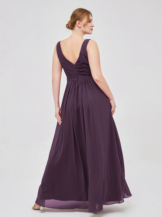Babaroni GeorgiaGeorgia Escote En V Gasa Largo Vestido De Dama De Honor Ciruela Tallas Grandes
