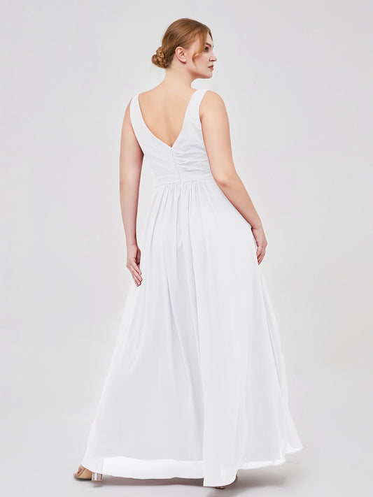 Babaroni GeorgiaGeorgia Escote En V Gasa Largo Vestido De Dama De Honor Blanco Tallas Grandes