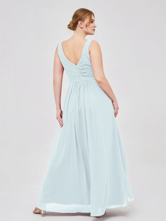 Babaroni GeorgiaGeorgia Escote En V Gasa Largo Vestido De Dama De Honor Niebla Tallas Grandes