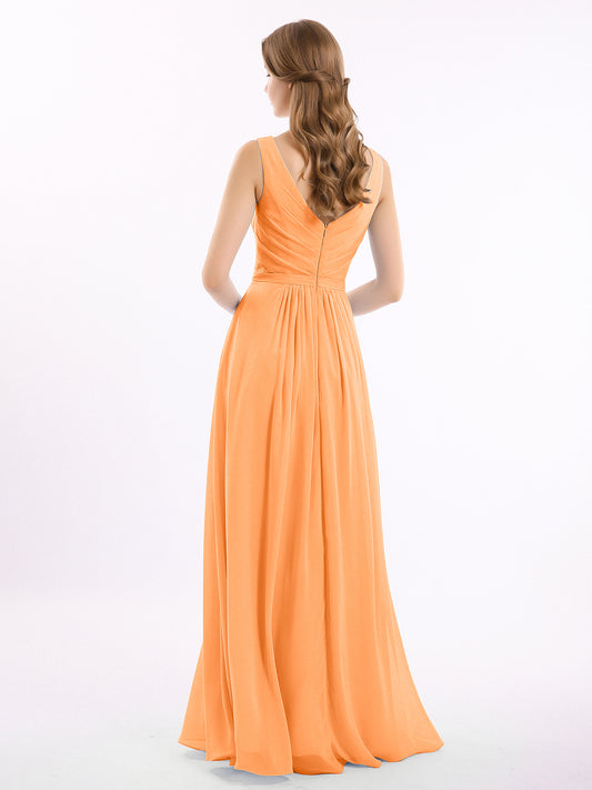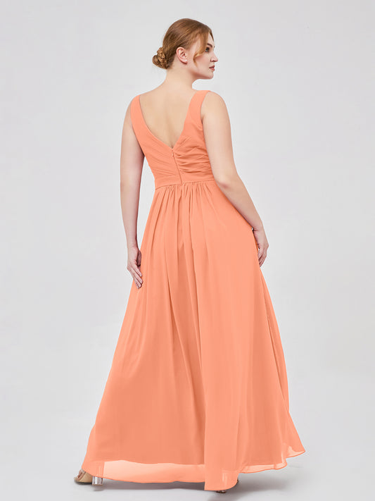Babaroni GeorgiaGeorgia Escote En V Gasa Largo Vestido De Dama De Honor Papaya
