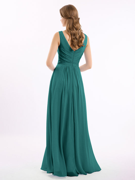 Babaroni GeorgiaGeorgia Escote En V Gasa Largo Vestido De Dama De Honor Pavo Real