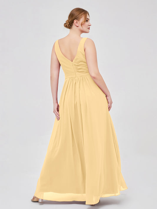 Babaroni GeorgiaGeorgia Escote En V Gasa Largo Vestido De Dama De Honor Oro Tallas Grandes
