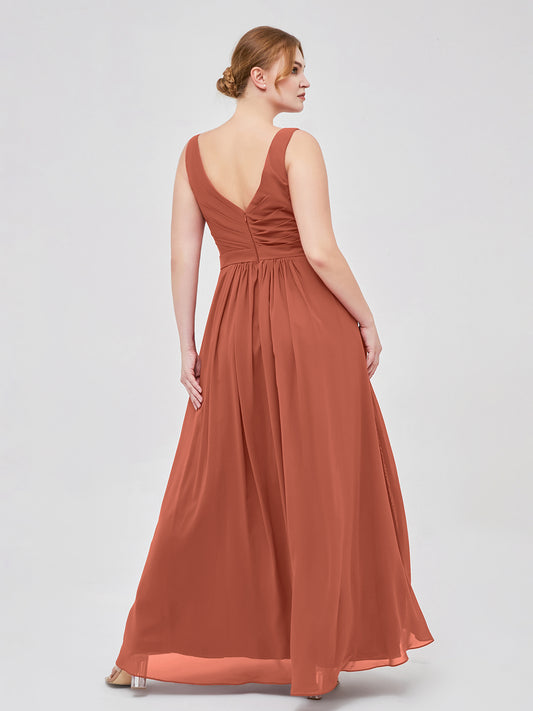 Babaroni GeorgiaGeorgia Escote En V Gasa Largo Vestido De Dama De Honor Óxido Tallas Grandes