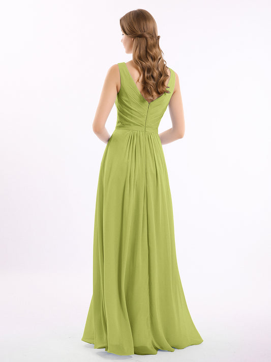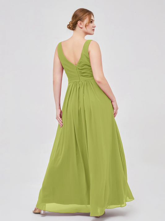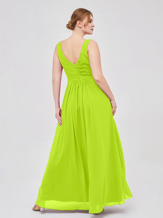 Babaroni GeorgiaGeorgia Escote En V Gasa Largo Vestido De Dama De Honor Verde Lima
