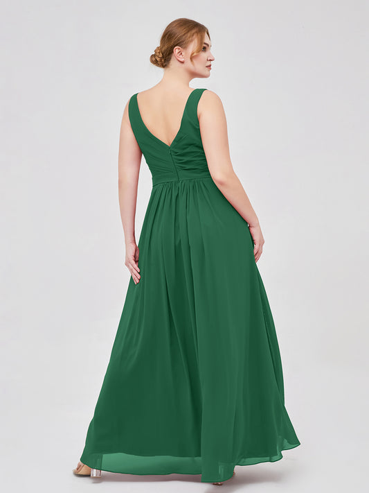 Babaroni GeorgiaGeorgia Escote En V Gasa Largo Vestido De Dama De Honor Verde Oscuro Tallas Grandes