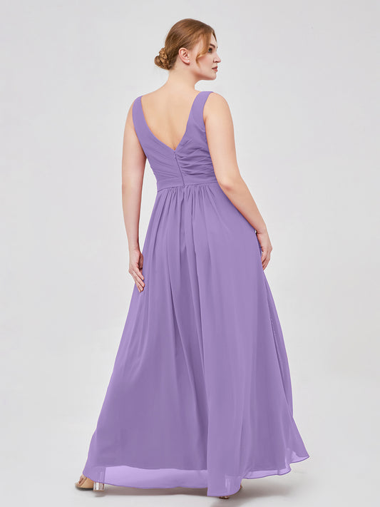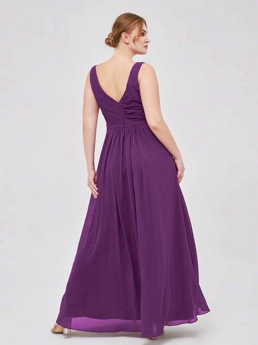 Babaroni GeorgiaGeorgia Escote En V Gasa Largo Vestido De Dama De Honor Uva Tallas Grandes