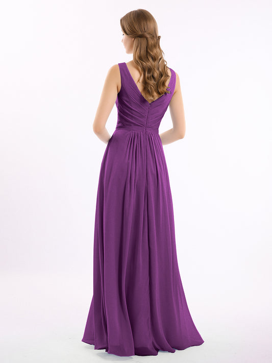 Babaroni GeorgiaGeorgia Escote En V Gasa Largo Vestido De Dama De Honor Uva