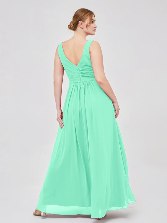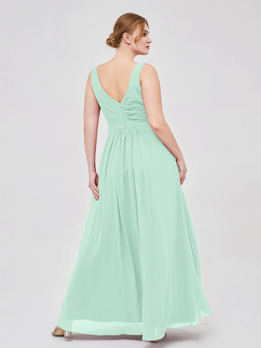 Babaroni GeorgiaGeorgia Escote En V Gasa Largo Vestido De Dama De Honor Verde Menta Tallas Grandes