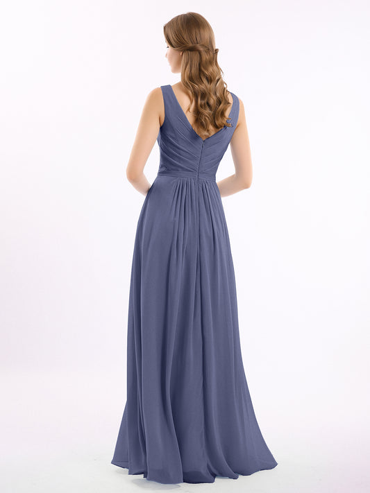 Babaroni GeorgiaGeorgia Escote En V Gasa Largo Vestido De Dama De Honor Tormenta Tallas Grandes