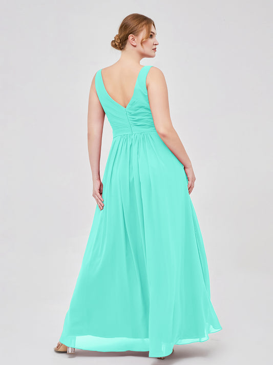 Babaroni GeorgiaGeorgia Escote En V Gasa Largo Vestido De Dama De Honor Turquesa