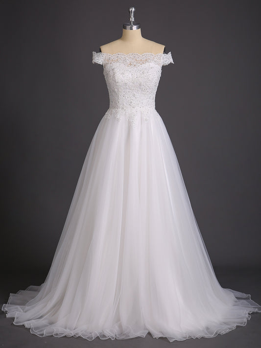 Babaroni GinaGina Fuera Del Hombro Encaje Y Tul Corte De Novia Marfil