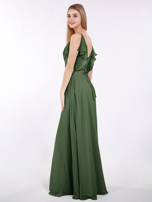 Babaroni GillGill Tirante Espagueti Gasa Vestido Con Escote En V Verde Oliva Tallas Grandes