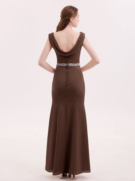 Babaroni GloriaGloria Gasa Tubo Vestido Con Cuentas Pretina Chocolate Tallas Grandes