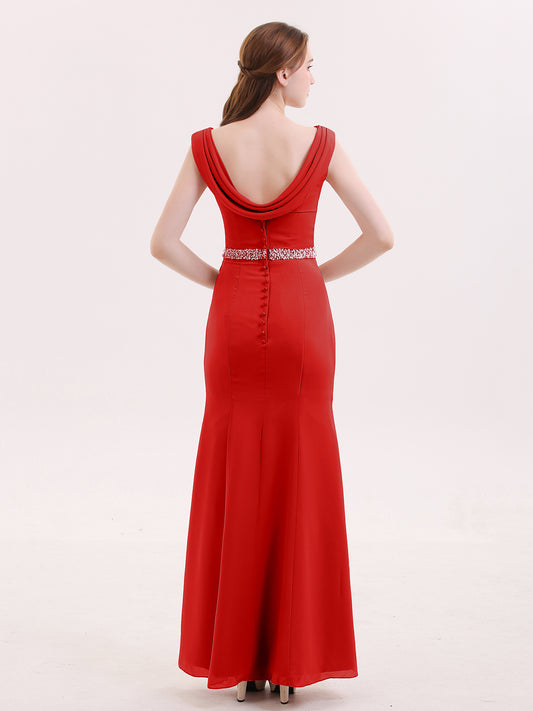Babaroni GloriaGloria Gasa Tubo Vestido Con Cuentas Pretina Rojo